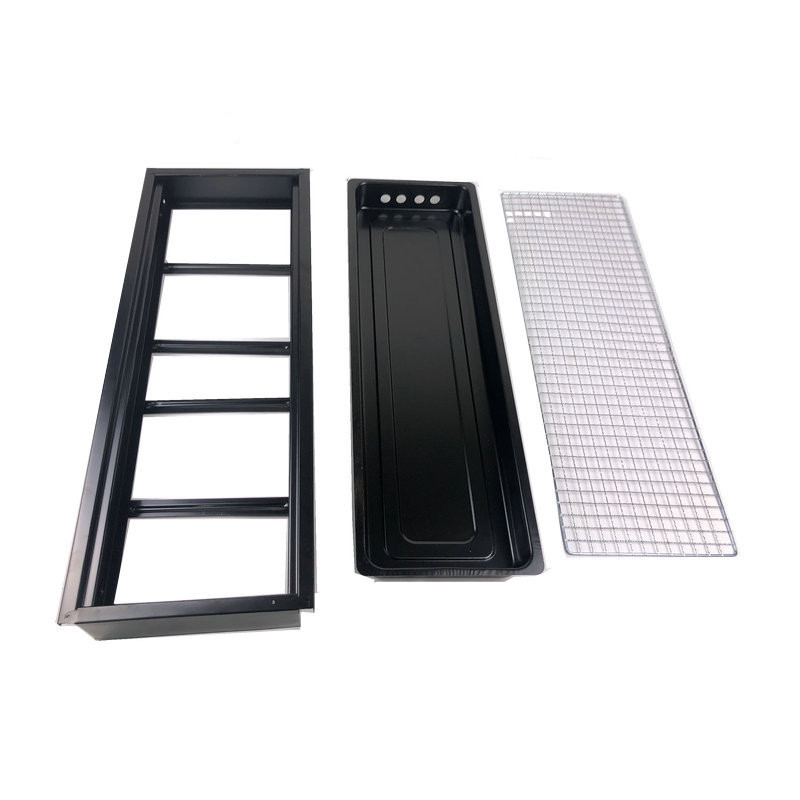 ![]() | Babban gasa barbecue Abu: 430 bakin karfe Girman samfur: 73*33*70cm Grill net: ƙarfe hafnium plating (430 bakin karfe na zaɓi) Girman Grill: 73*33.5cm Kauri na murhu: 0.5mm Girman Kunshin: 76*35*20cm Nauyi: 3.8kg | ![]() | Tanda nadawa nau'in X Material: ƙarfe Girman samfur: 44*28.5*36cm Girman ninki: 45.5*44*3cm Nauyi: 2.6kg |